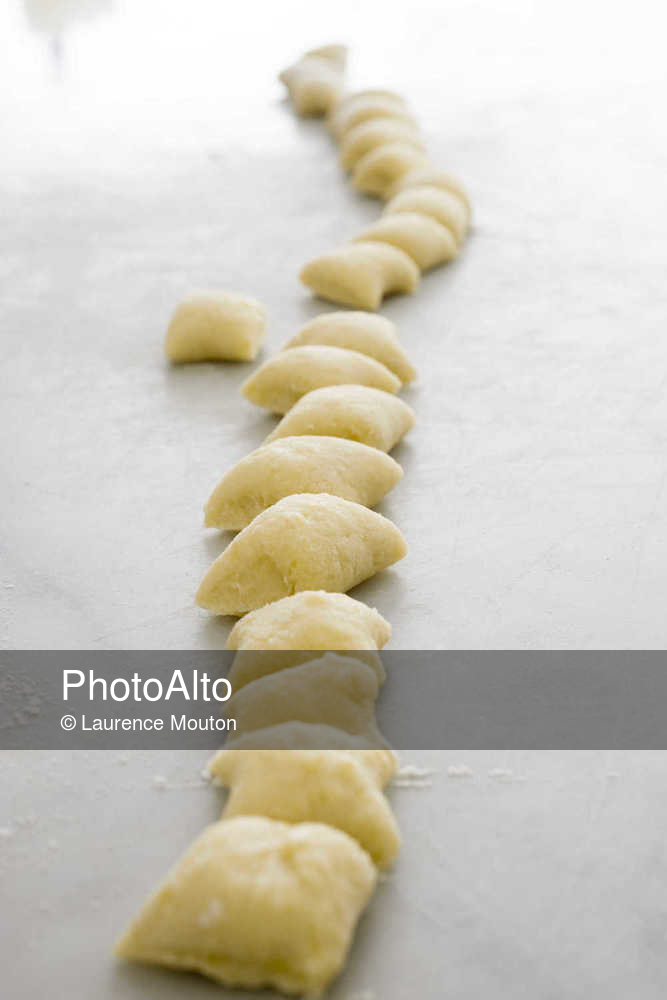 Fresh gnocchi dough cut into small pieces © Laurence Mouton