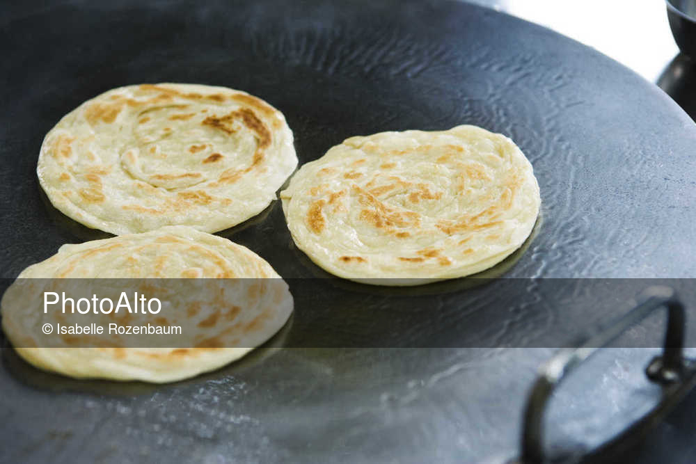 Thai sweet roti cooking on griddle © Isabelle Rozenbaum
